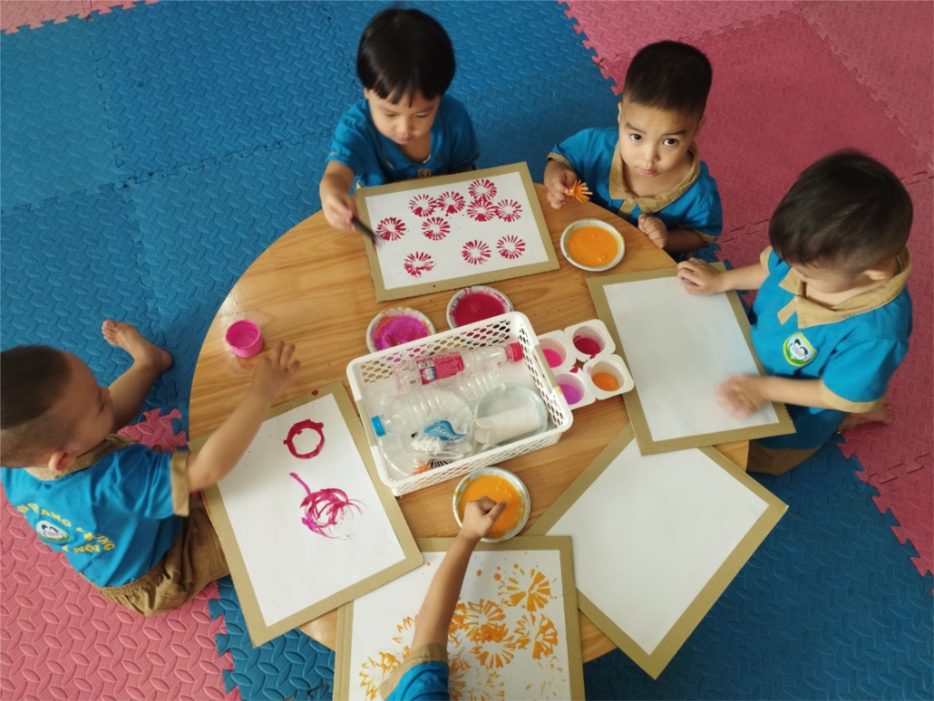 Sau đây là một số hình ảnh về hoạt động tạo hình với đề tài “ chơi với màu nước” của trẻ lớp nhà trẻ D1 trường mầm non Quang Trung.